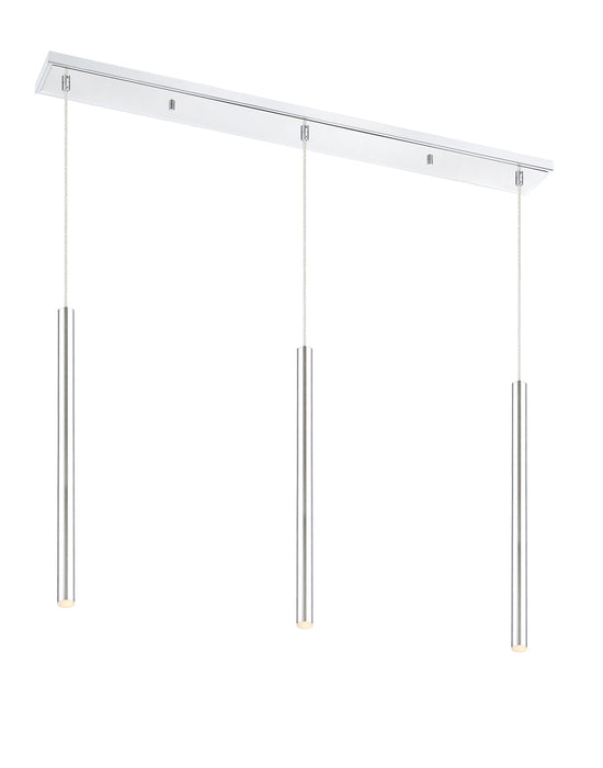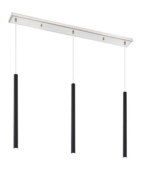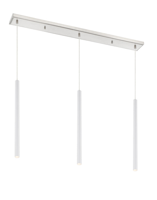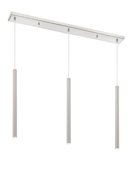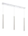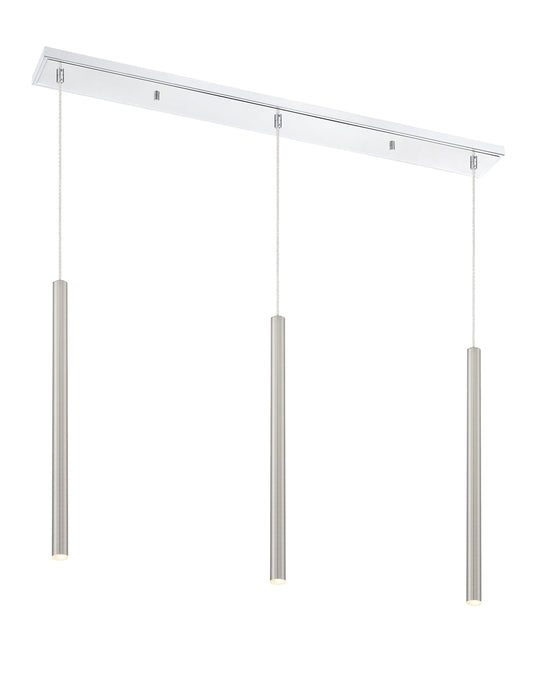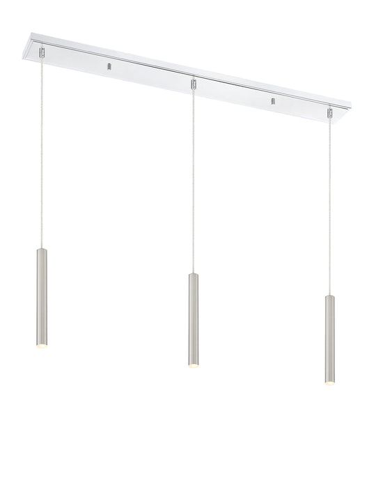 Sleek and shiny, the brushed nickel finish from this three-light pendant light is full of charm. Create a stunning visual with the bright metallic brilliance of elongated lines and a soft glow.