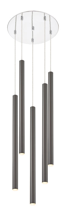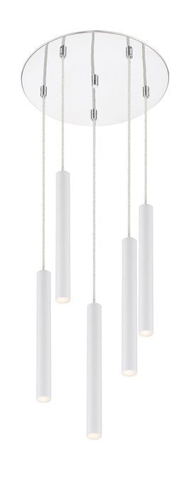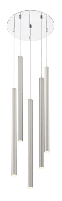 Perfect for a sleek bathroom, this five-light pendant light features a windchime-inspired silhouette. Clean and elongated, the smooth lines of the silhouette boast a radiant brushed nickel finish.