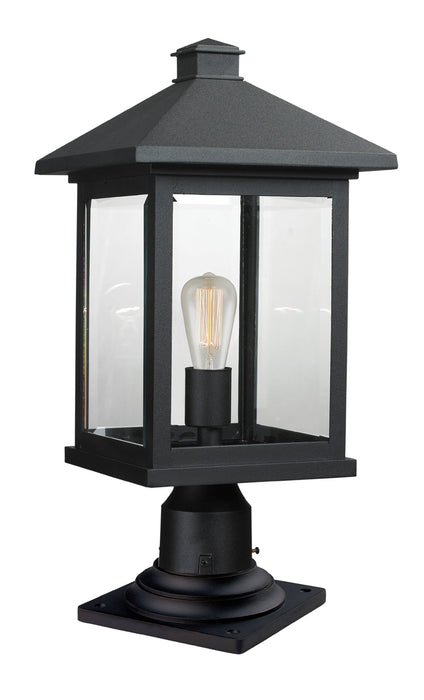 The timeless, mission styling of the Portland family displays clean lines to suit both contemporary and traditional decors. Clear beveled glass paired with black comprised of cast aluminum which withstands nature"s seasonal elements.