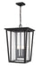 Sophisticated design elements form a geometric silhouette with a softened look. This outdoor hanging lantern offers a bold black finish and a charming candelabra bulb base shielded behind a clear glass shade.